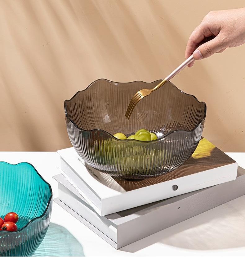 طبق فاكهة بسعة كبيرة يناسب غرفة المعيشة بتصميم بسيط، مثالي لتقديم الوجبات الخفيفة والفواكه، مصنوع من مواد متينة وسهل التنظيف.