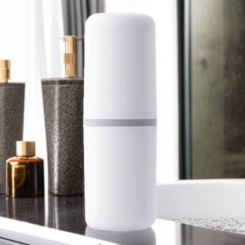 علبة تخزين لفرشاة ومعجون الأسنان، تصميم محمول للسفر، مواد آمنة وصحية، مقاومة للرطوبة، سهلة التنظيف، مناسبة للحقائب، تحافظ على الأدوات منظمة ونظيفة أثناء التنقل.